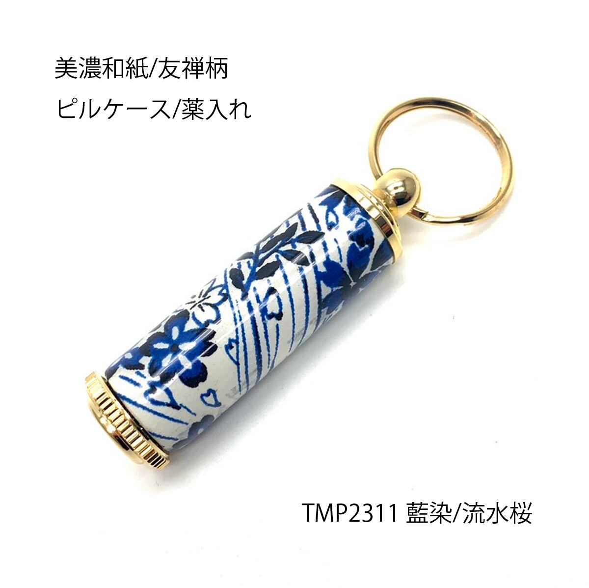雅な伝統美の美濃和紙 友禅柄ピルケース /薬入れ 藍染/流水桜 TMP2311