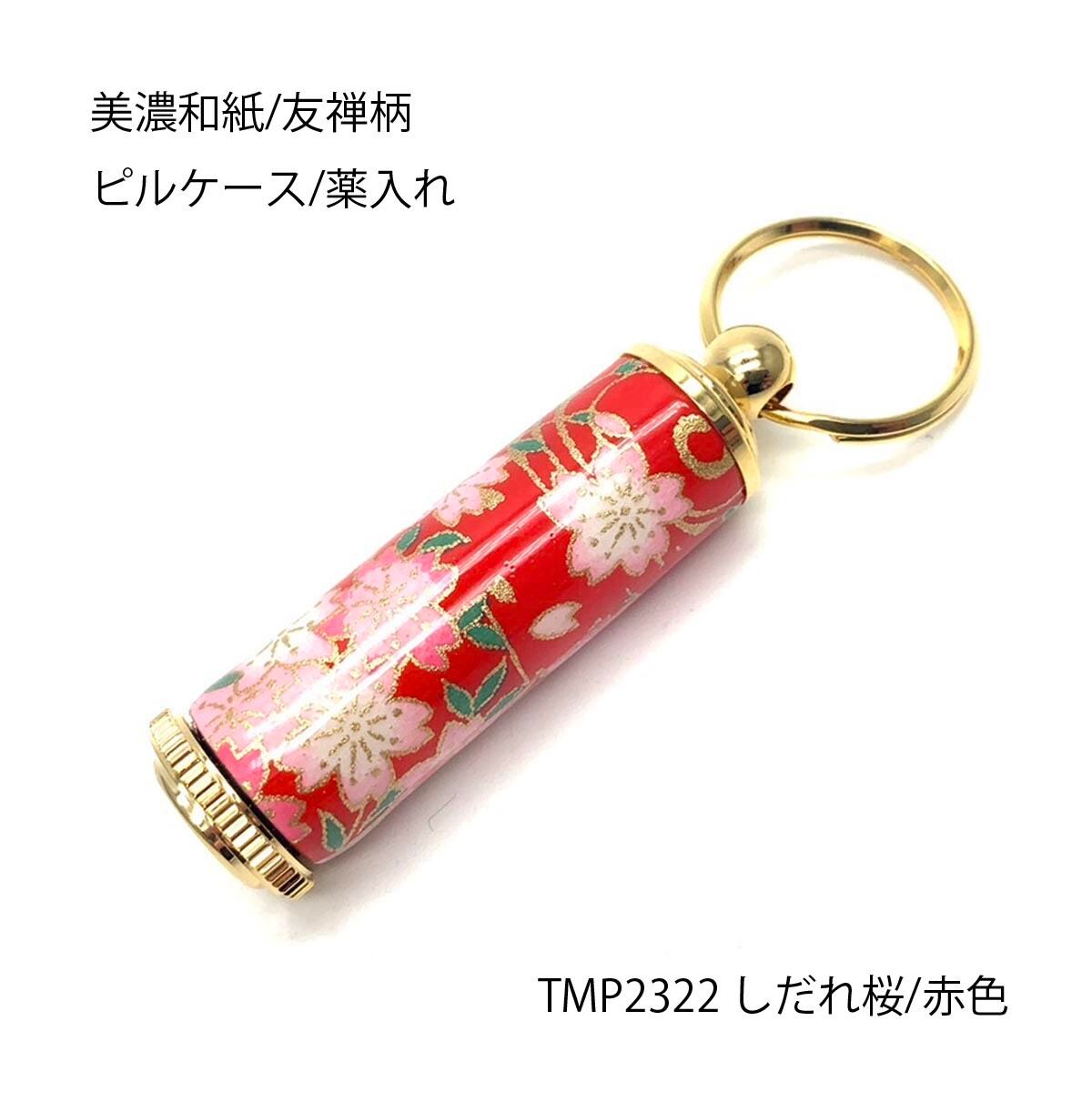雅な伝統美の美濃和紙 友禅柄ピルケース /薬入れ しだれ桜 TM2322 赤色