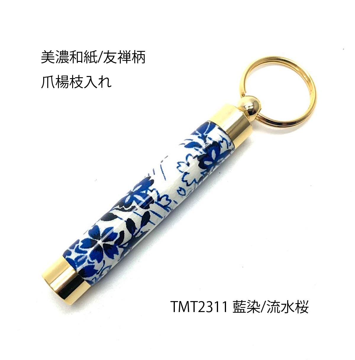 伝統の美濃和紙 友禅柄 爪楊枝入れ /つまようじ 藍染/流水桜 TMT2311