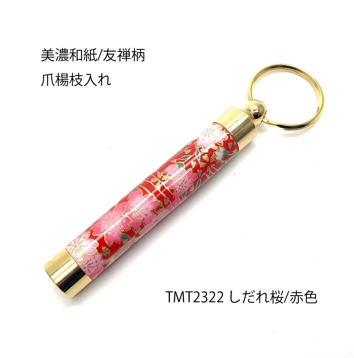 伝統の美濃和紙 友禅柄 爪楊枝入れ /つまようじ しだれ桜 TM2322 赤色