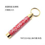 伝統の美濃和紙 友禅柄 爪楊枝入れ /つまようじ 桜と麻の葉 TM2324 朱色