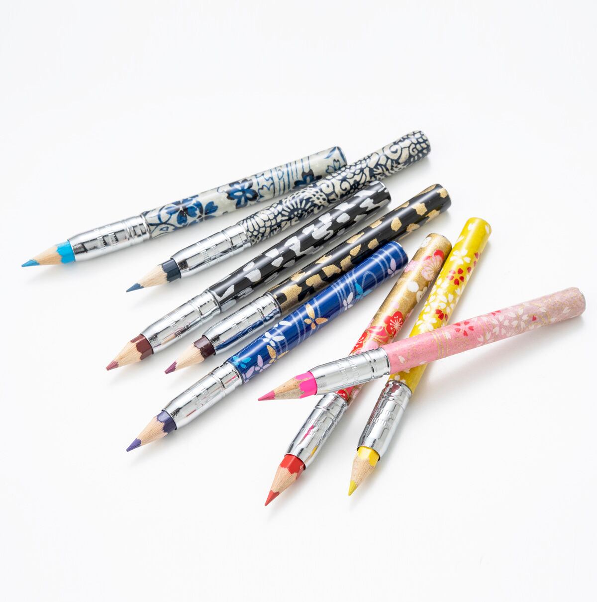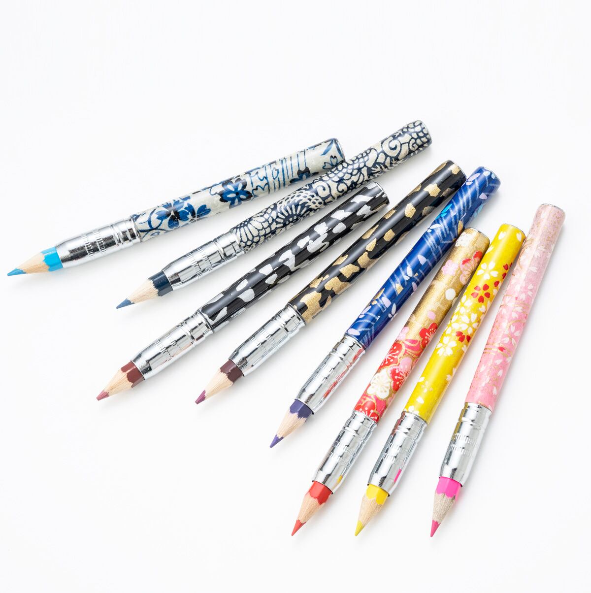 千代紙でも知られる「雅で美しい」友禅柄をあしらった、色とりどりの手づくり筆記具です。