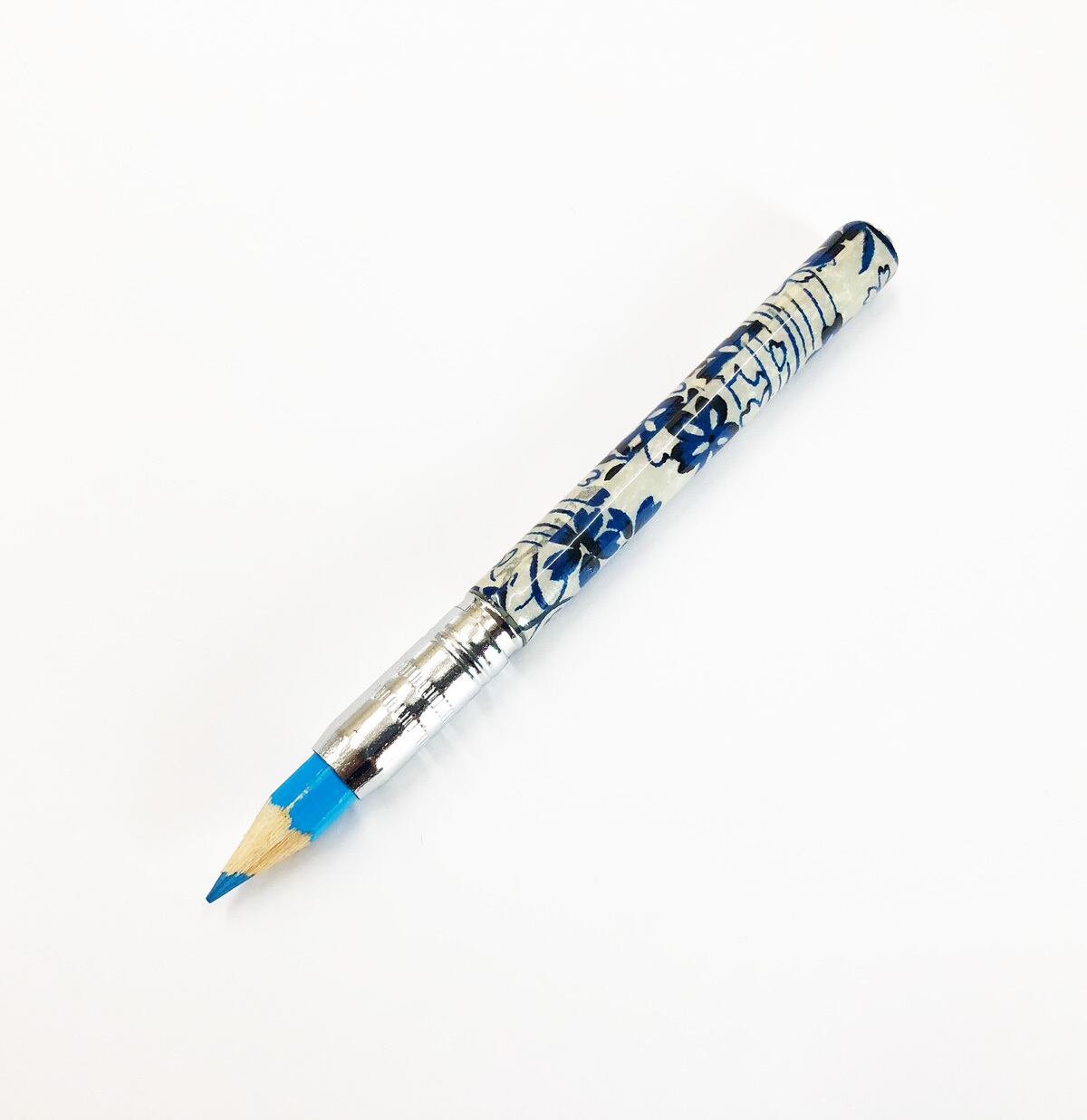 美濃和紙 友禅柄 えんぴつ補助軸 /エクステンダー 藍染・流水桜 TM1811 紺色