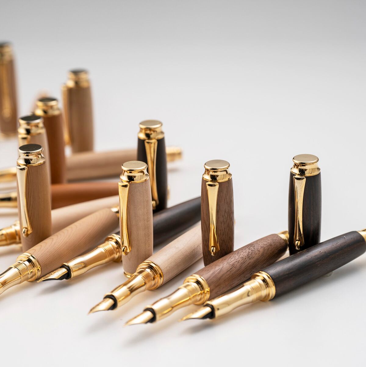 高級家具材として知られる銘木の天然木材を活かした万年筆です。木肌の温もりが感じられるオリジナル万年筆です。使うことで色ツヤが変わり経年変化を楽しんでもらえ、この世で1本の自分だけのオンリーワン筆記具となります。Pen先金具は世界の人に愛されるドイツ(DAYACOM社製・合金)中字を使用しており、コンバーター(内蔵)とカートリッジは交換可能です。