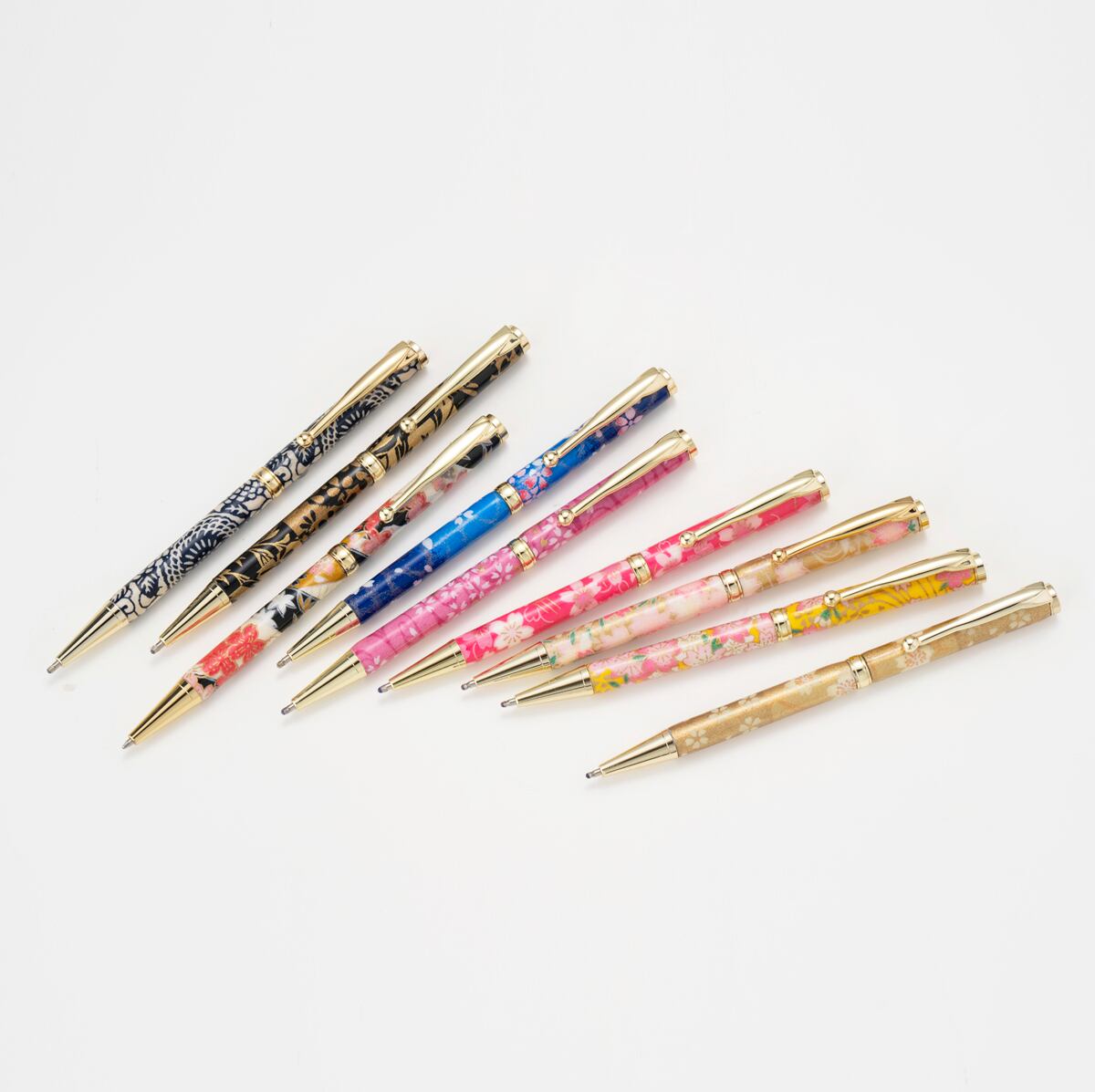 千代紙でも知られる「雅で美しい」友禅柄をあしらった、色とりどりの手づくり筆記具です。
