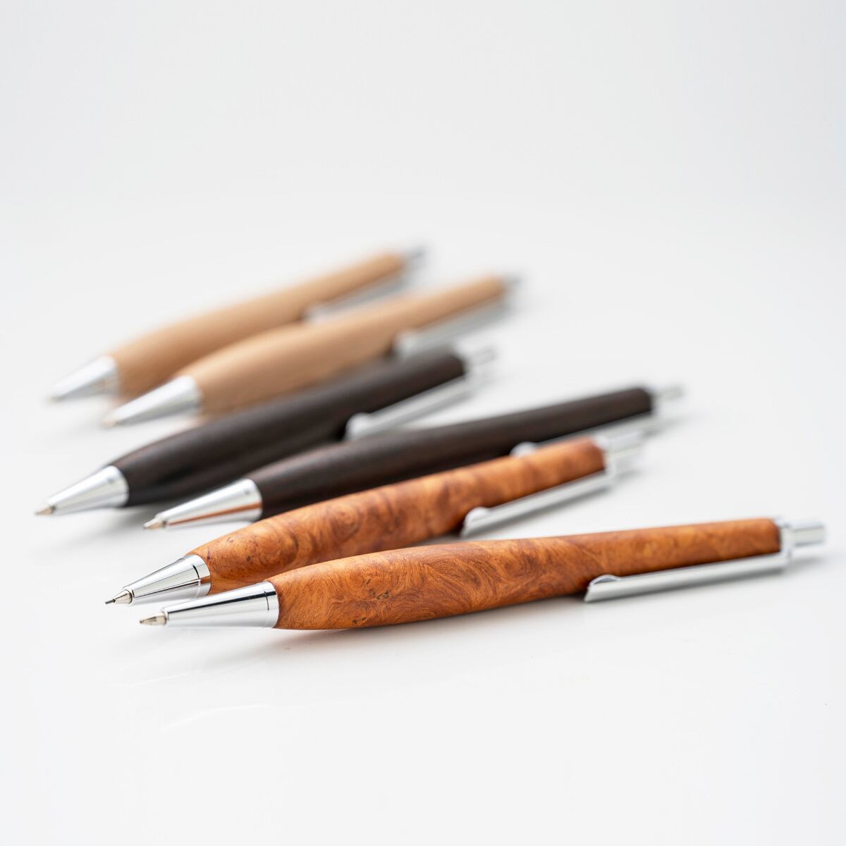 流線形のフォルムはPen先重心で使用バランスが良く、長く使っても疲れにくい独自設計の形状が特徴です。自然の恵みである天然木材の中でも希少木にこだわり削り出しており、木肌の温もりを感じるデザインの筆記具です。何時までも一緒にいたい一品です。